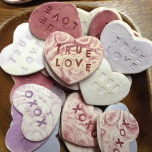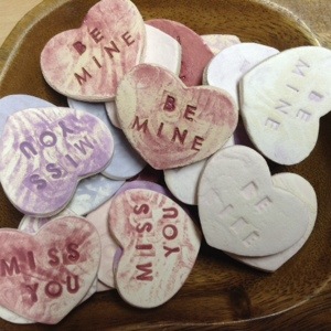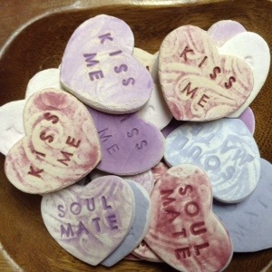 These cute ceramic conversation hearts are available in various colours and contain messages like:
