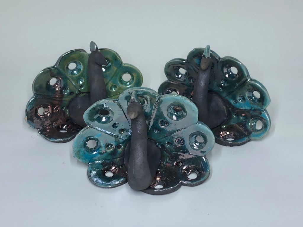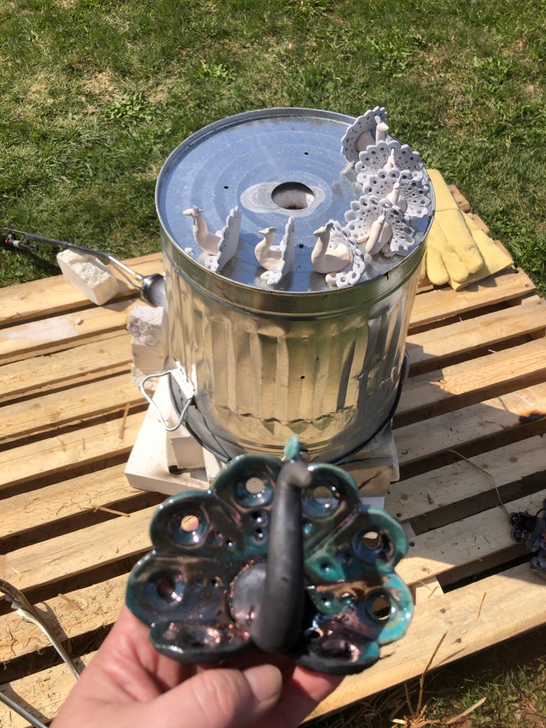 While i prefer a smack of jellyfish (or maybe a swarm if i’m swimming with them) and a party of peacocks, this is the second firing of this kiln and i name raku firings in alphabetical order so B nouns are in today.