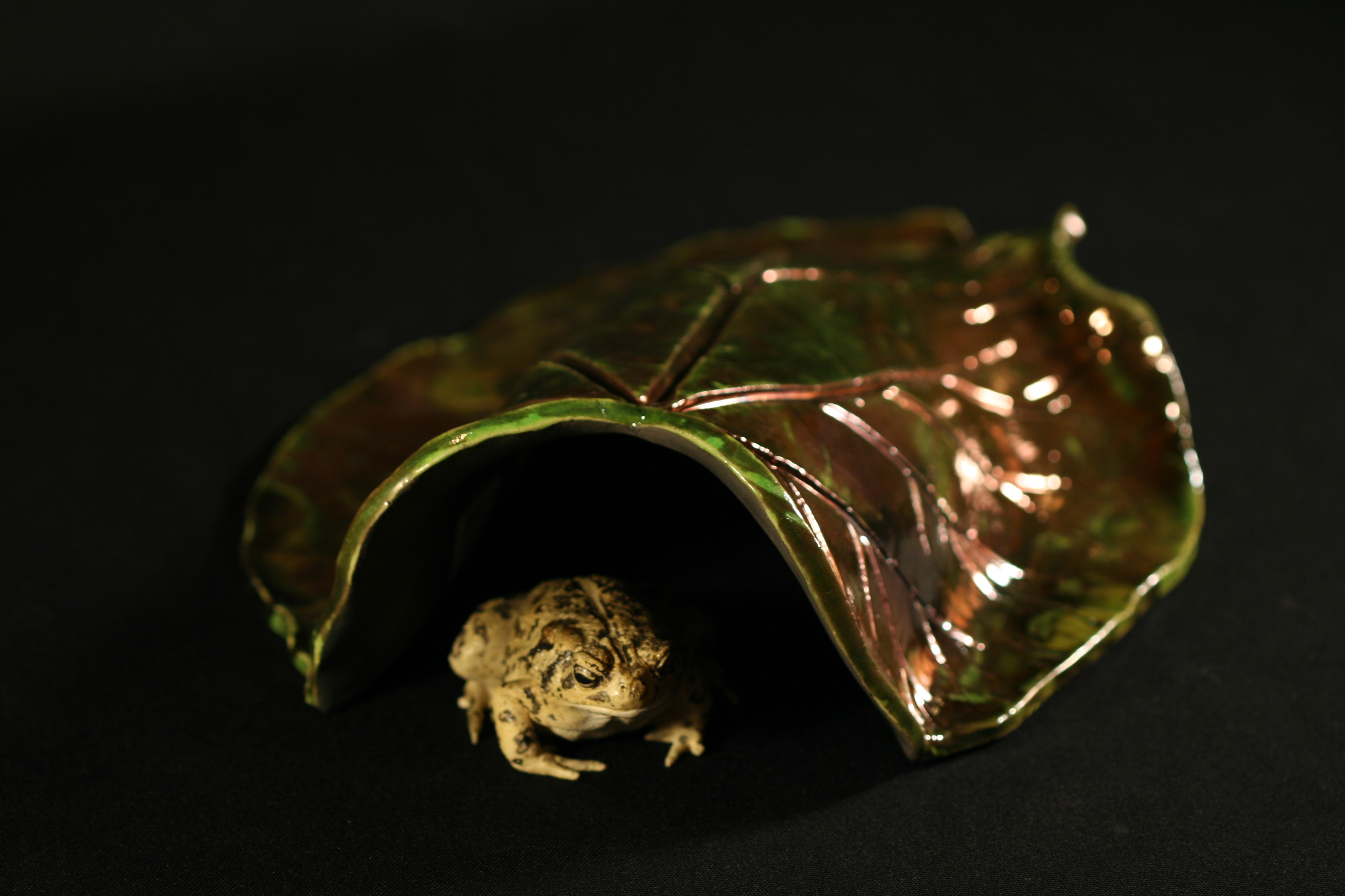 Toad house – SOLD Published November 28, 2013 at 3456 × 2304 SOLD – #065 Raku rhubarb leaf toad house, large – $45