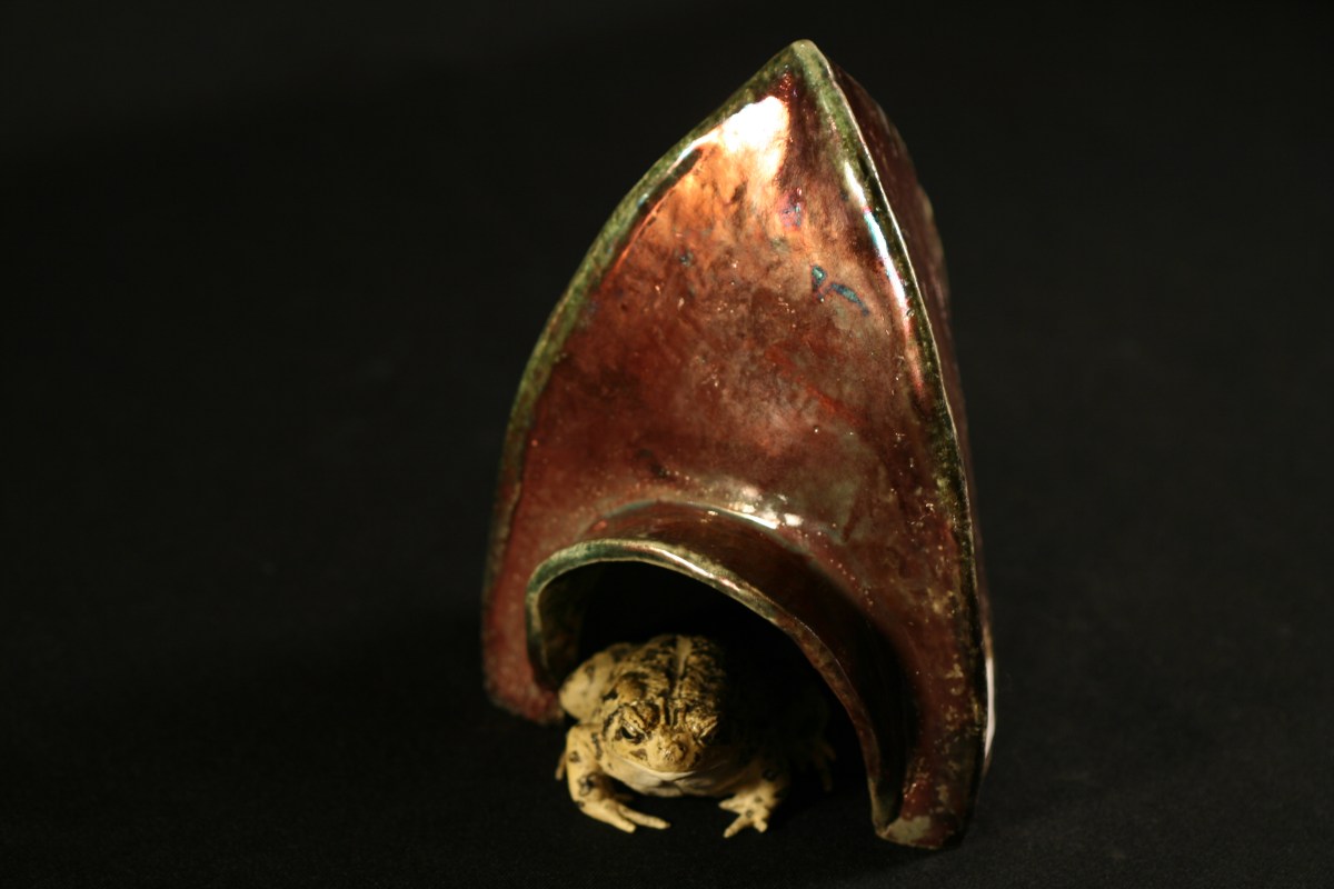 Toad house – SOLD Published November 28, 2013 at 3456 × 2304 SOLD #062 Raku triangle toad house – $40