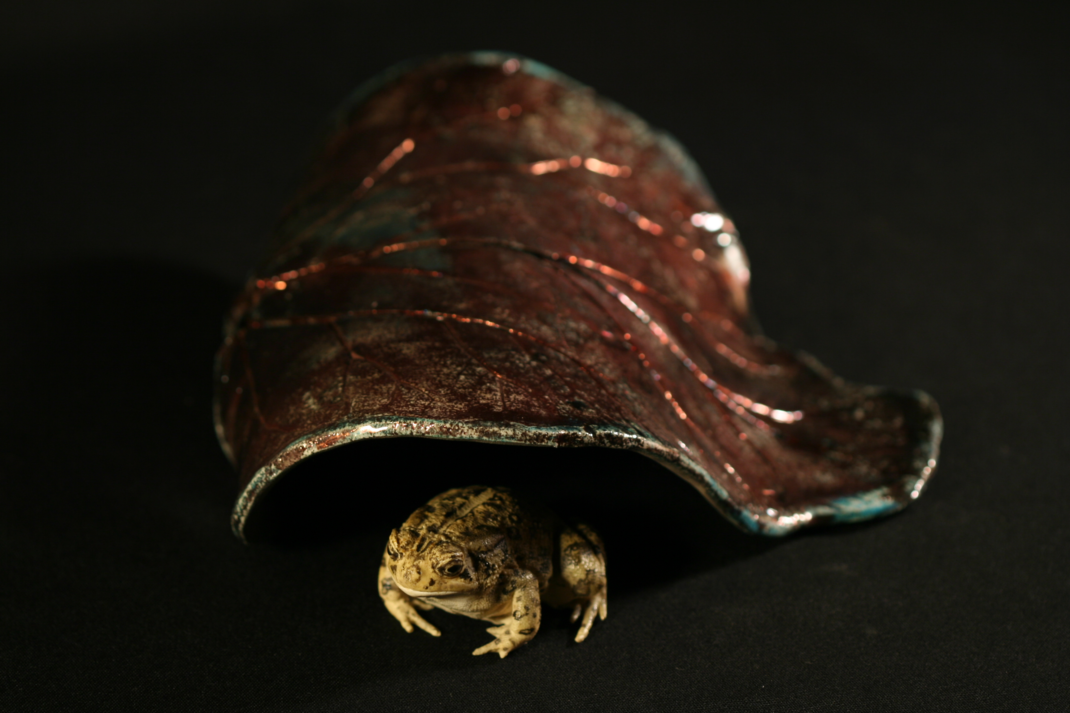 Toad house Published November 28, 2013 at 3456 × 2304 #048 Raku rhubarb leaf toad house, medium – $35