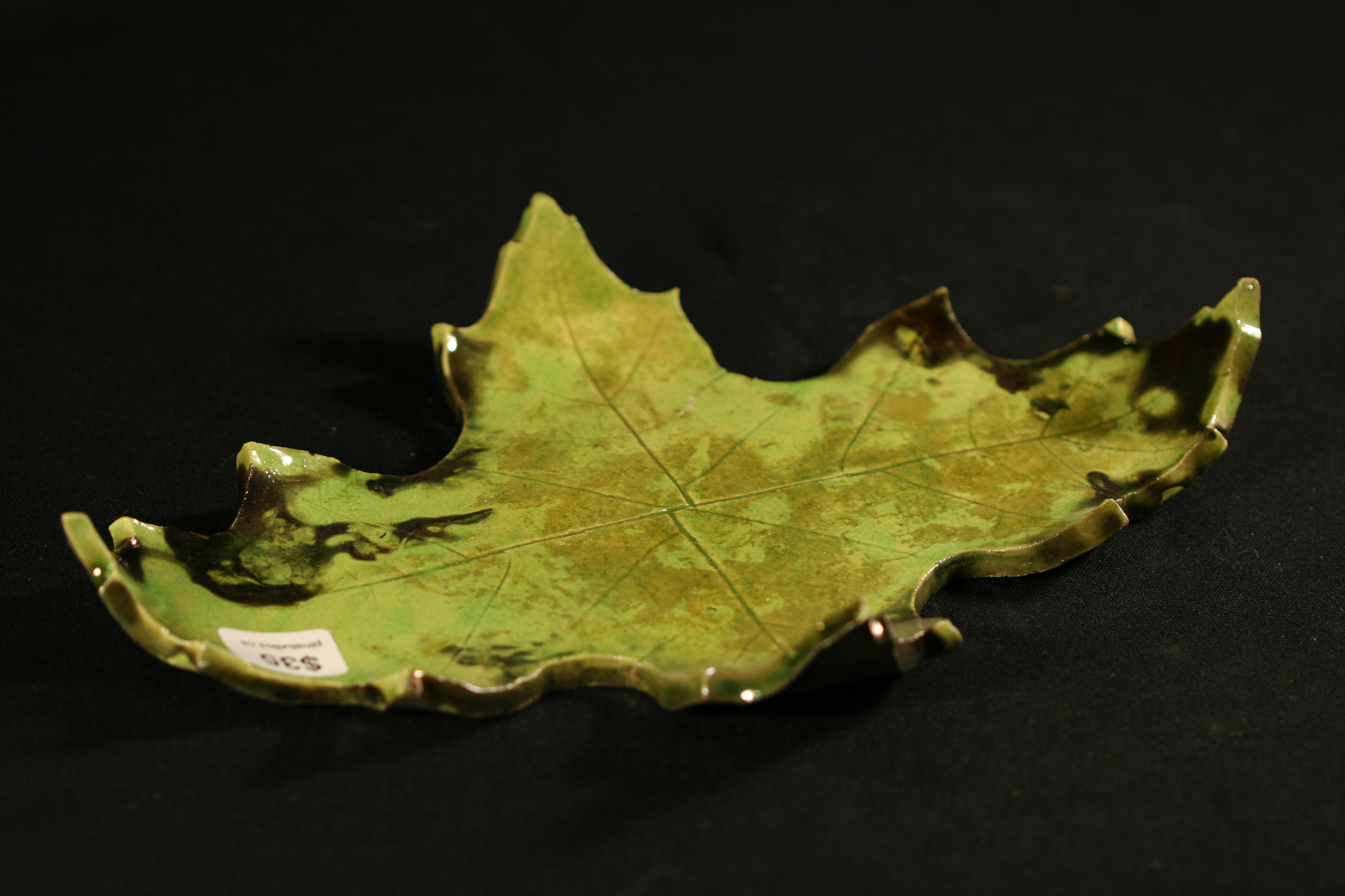 #024 Raku leaf dish, green – $35
